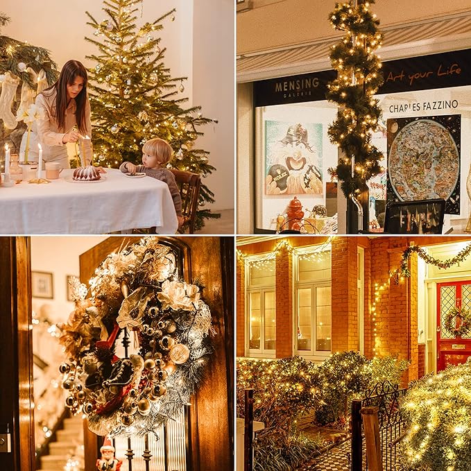 - ๐ฒConnectable Christmas Lights: Warm white string lights can be End-to-End connected. Up to 10 sets,lighting range can be extended to 130ft. With this convenient function,you can do the DIY decoration on any occasions: shopping street, Christmas, Halloween, music festival, birthday party, graduation party, garden, deck, bedroom.