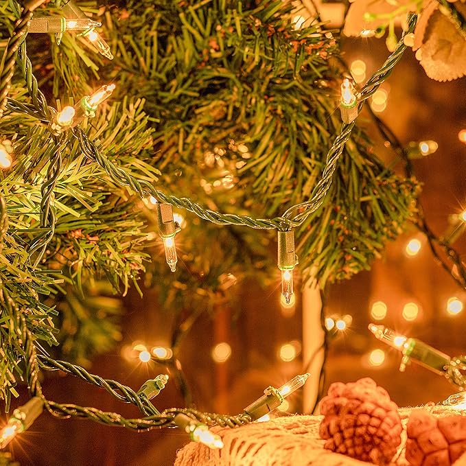 - ๐ฒ50Count Mini String Lights: Light up the upcoming Christmas with Mimigogo 13ft 50count warm white Christmas string lights is with Green Wire,which comes with 2Extra Bulbs and 2 Replacement Fuses. In addition, our wires is more durable compared with other string lights. You can use it for a long time without fear of burning it out.