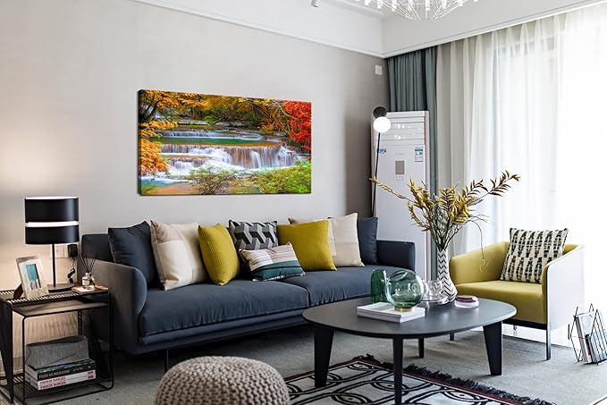 DZL Art S75375 Large Wall Art Canvas Prints Waterfall In Deep Rain Forest Jungle Painting Framed wall art for living Room Bedroom and Office Home Decor Artwork