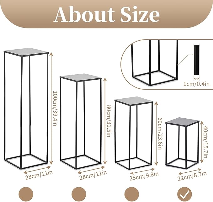 - 【Easy to Assemble】Sziqiqi floor flower display stand adopts disassembly and assembly design, which can better save storage space and protect products. Only need to tighten metal strips into the square base. After the package arrives, please check whether you have received all the accessories.