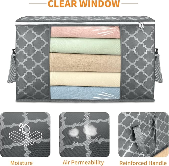 3 Pack Large Storage Bag Clothes Storage Organizer with Durable Handles for Closet Storage, Comforter, Blankets, Bedding and Toys 90 L