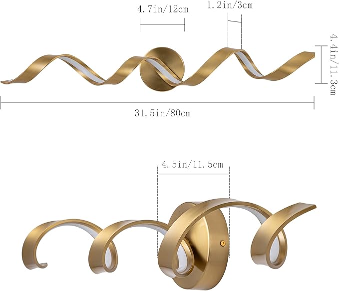- 【Modern and Unique Spiral Design】Not an ordinary one-line bathroom light fixture, but a curved design that can add more chic decor to your modern space. The living room, bathroom, hallway are some of the ideal spaces where the LED wall lighting can shine!