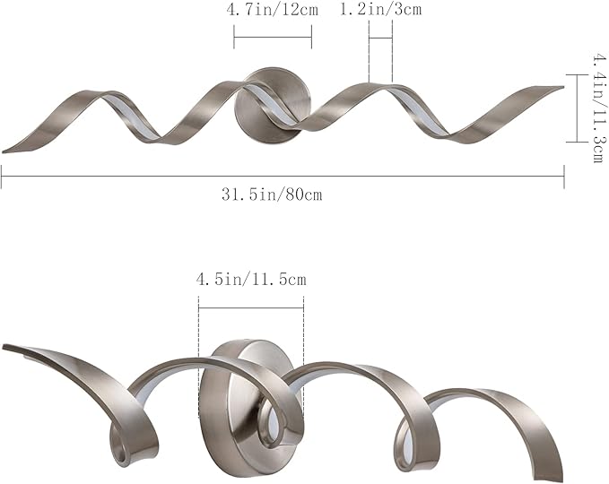 - 【Modern and Unique Spiral Design】Not an ordinary one-line bathroom light fixture, but a curved design that can add more chic decor to your modern space. The living room, bathroom, hallway are some of the ideal spaces where the LED wall lighting can shine!