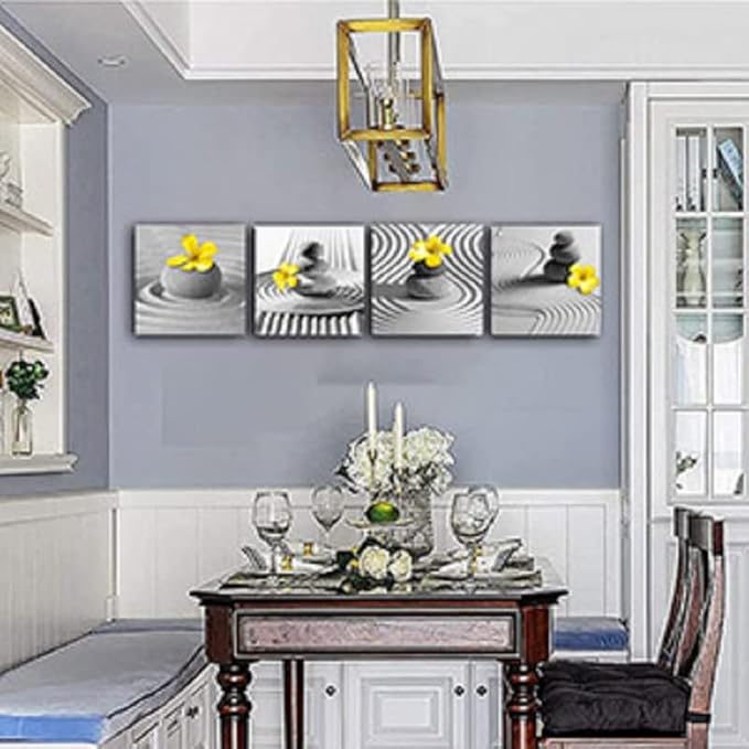 - ๐ผZen Decor Yellow Flower Wall Art Size:12x12inchx4pcs (30cmx30cmx4pcs)