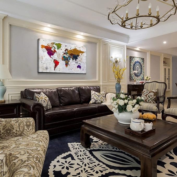 ZEYDRT Canvas Wall Art world map Wall Art for Office Living Room Home Decorations artwork Canvas Art Wall Decor map of the world Wall Decoration Vintage Office for Home Bedroom Decoration20 x40 โฆ