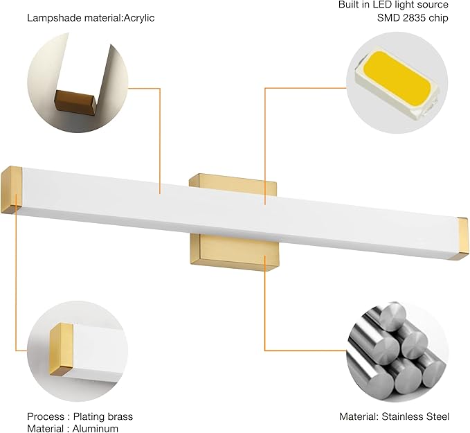 - 【Original Design 】Own US Patent Certificate,Modern design, brushed nickel base and white acrylic. For bedroom, it is a wonderful makeup vanity light. As the bathroom vanity light, it works well too.