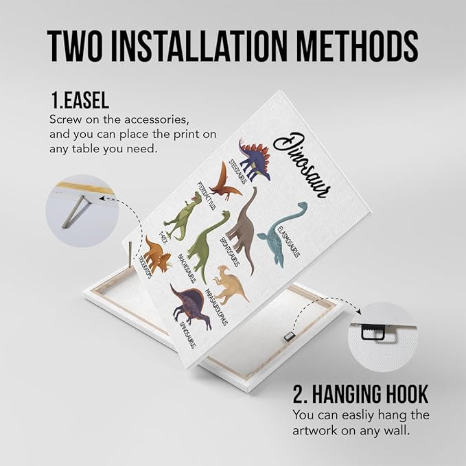 Dinosaur Species Canvas Wall Art Stegosaurus Pterodactylus Triceratops Educational Poster Kids Boys Girls Children Rooms Learning Paintings Artwork Ready to Hang Home Classroom Decor 15x12 Inches