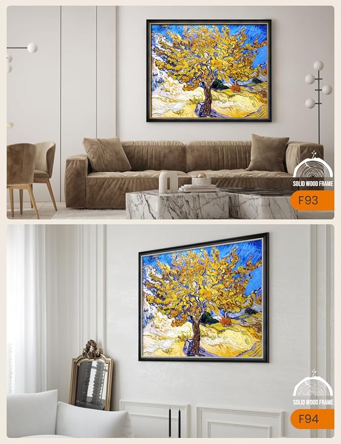 DECORARTS - The Mulberry Tree by Vincent Van Gogh Art Reproduction. Oversize Solid Wooden Frame Matching with Giclee Prints Canvas Wall Art. Total framed size: 43x35