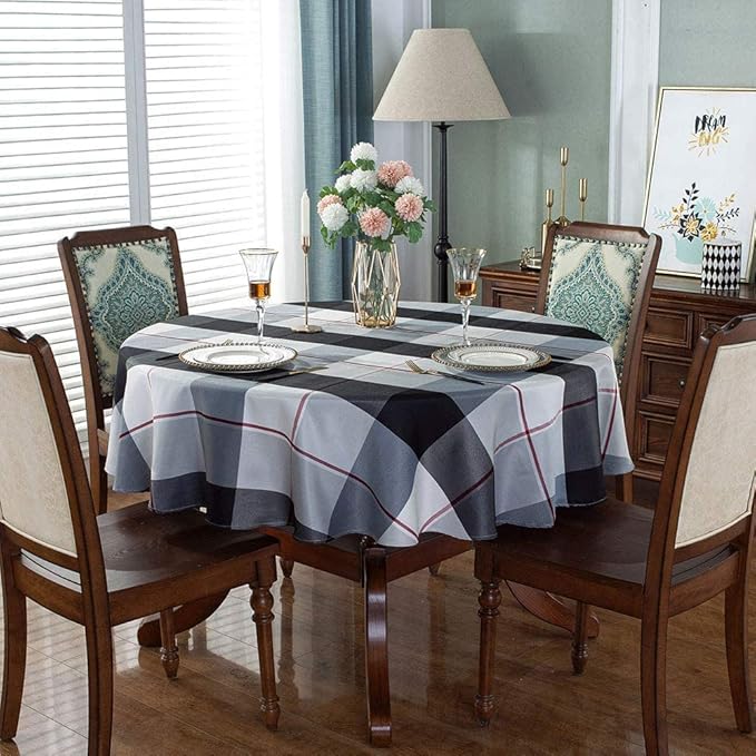 SASTYBALE Round Tablecloth Checkered Style Polyester Table Cloth Dust-Proof Wrinkle Resistant Heavy Weight Table Cover for Kitchen Dinning Tabletop Decoration (Round,60" (4-5 Seats), Grey)