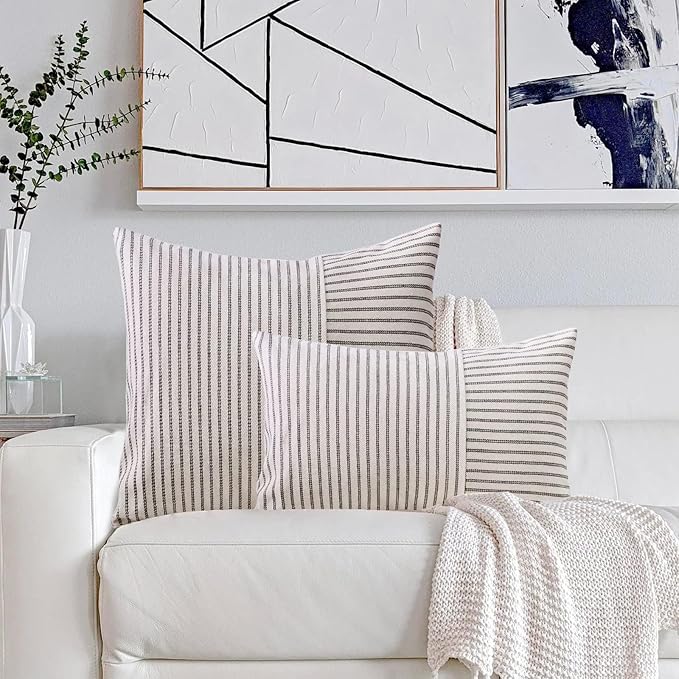 - ★★★Modern Simple Design: Decorative pillow covers with a modern yet simplistic aesthetic. Colors stripes with patchwork create a modern look. The invisible zipper closure adds an elegant touch—perfect for rustic farmhouse home decor. Use these throw pillows to bring your decorating ideas to life.