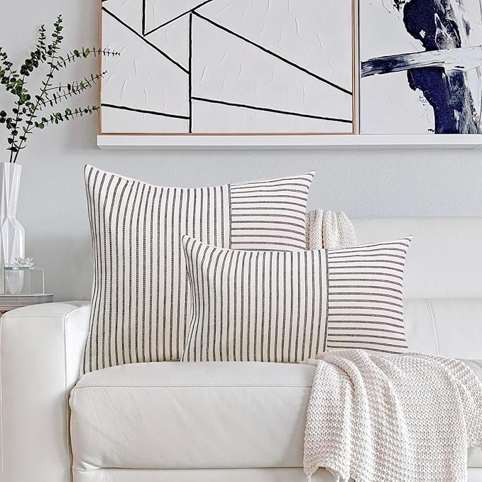 - ★★★Modern Simple Design: Decorative pillow covers with a modern yet simplistic aesthetic. Colors stripes with patchwork create a modern look. The invisible zipper closure adds an elegant touch—perfect for rustic farmhouse home decor. Use these throw pillows to bring your decorating ideas to life.