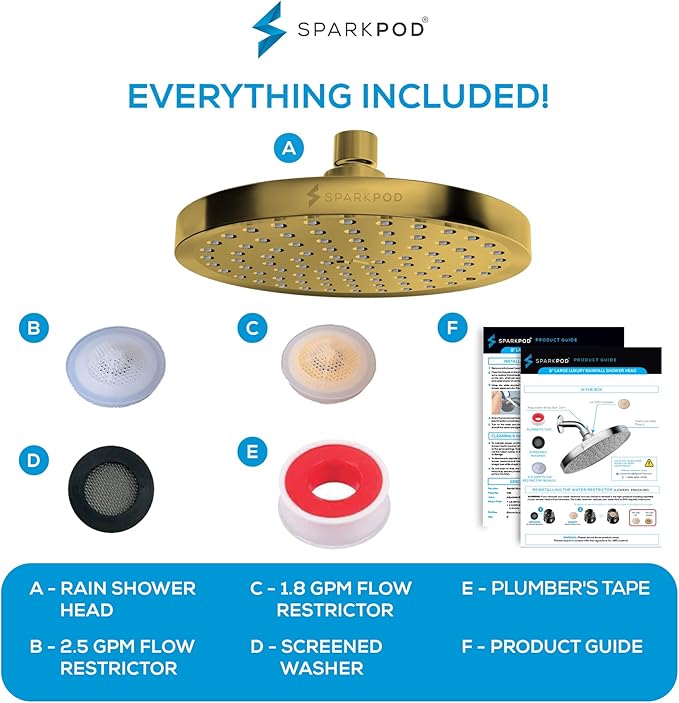 - ENERGY SAVINGS: Each SparkPod Rain Shower Head has a maximum outflow of 1.8 gallons per minute (GPM) so you can save on your water heater bill or ENJOY longer hot showers