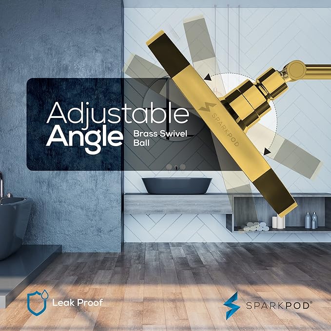 SparkPod Shower Head - High Pressure Rain - Premium Quality Luxury Design - 1-Min Install - Easy Clean Adjustable Replacement for Your Bathroom Shower Heads (Egyptian Gold, 8 Inch Round)
