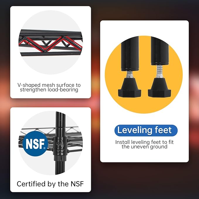 - ✔【EASY TO ASSEMBLE】: The shelves for storage is easy to assemble, all parts packaged for idiots.This wire shelf structure is very simple ,No tools required to assemble it.The wire shelving unit is simple to assemble,You only need to spend 10 min to install it.storage shelves wire shelf wire shelving unit.