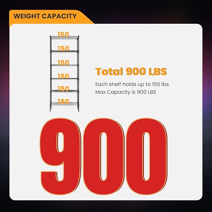 - ✔【STRONG WEIGHT CAPACITY】 Each shelving can hold 150 pounds (evenly distributed), and the total maximum load weight of the storage shelves for small places is 900 pounds. The shelves for storage for kitchen can put some commonly used living objects on it without worrying about the deformation of the storage shelves.