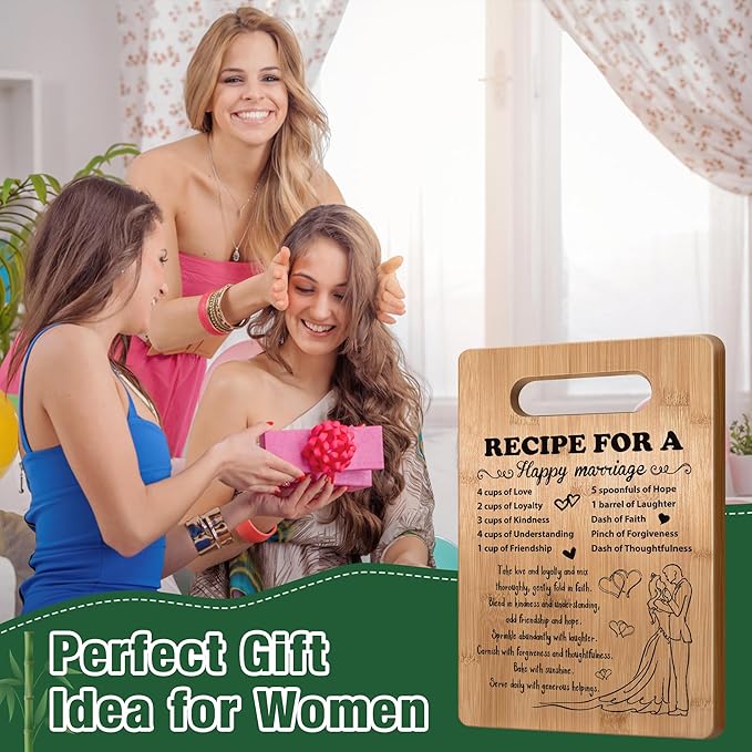 - 【Best Marriage Anniversary Engagement Gift】The classic perfect gift for the strongest couple you know! This design features "Recipe for a Happy Marriage". Our cutting boards make a wonderful gift for newlyweds, wedding gift, engagement gift, anniversary, bridal shower, Valentine's day.