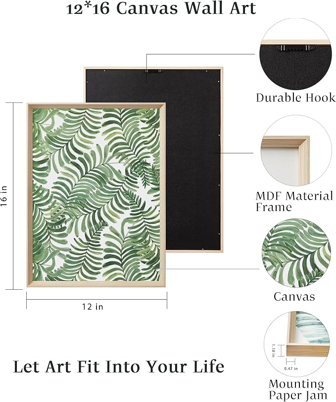 - BOTAINICAL WALL DECOR :This set of framed floral wall art includes 3 framed images. Our fleshy framed botanical prints are simple wall decorations with a slight breeze that blows the palm leaves, providing a unique and intriguing touch by bringing the joyful and calming effect of nature into any home or office.