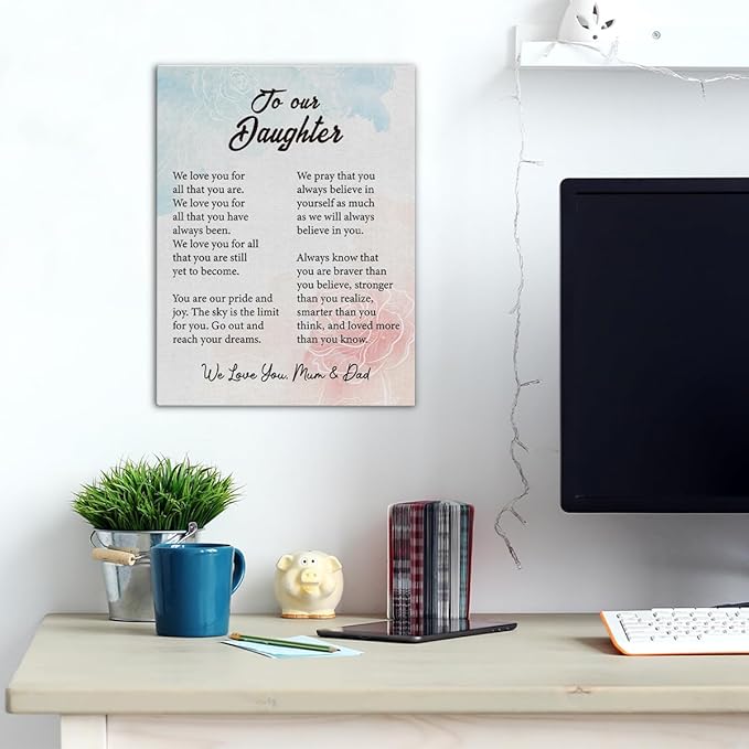 Inspirational Daughter Canvas Wall Art - Gifts for Daughter Canvas Prints Framed Paintings Artwork Ready to Hang Home Bedroom Girls Room Wall Decor 15 x 11.5 Inches