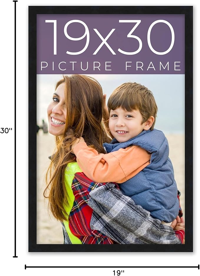 - Handcrafted Black Wood Picture Frame for Family Photos, Art Prints, Canvases, Documents, Kids Drawings, Diplomas, Certificates, and More Measuring 19x30 Inches