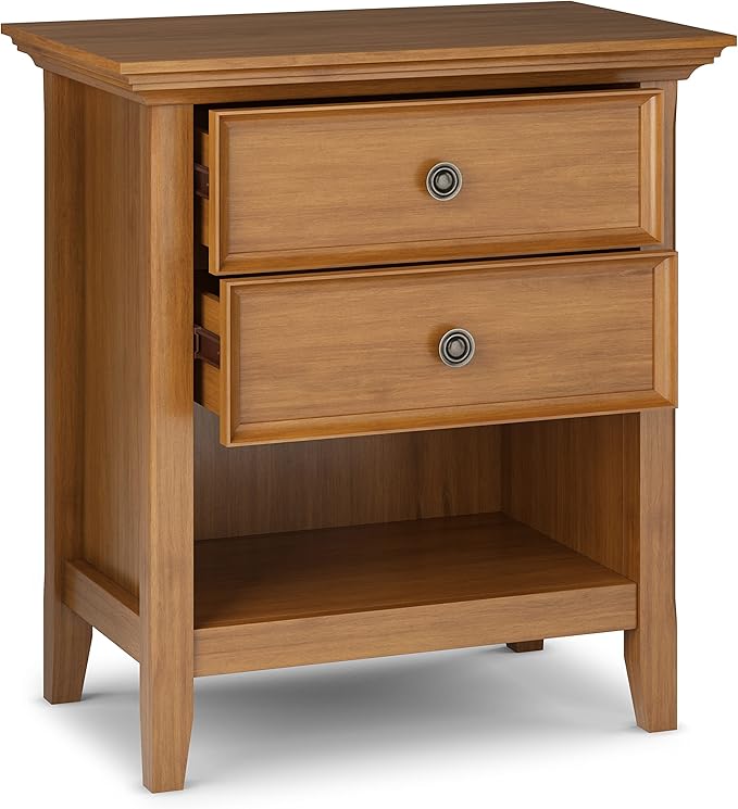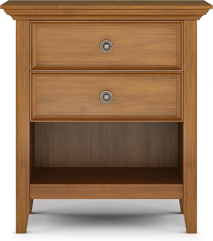 SIMPLIHOME Amherst SOLID WOOD 24 Inch Wide Traditional Bedside Nightstand Table in Light Golden Brown, For the Living Room and Bedroom
