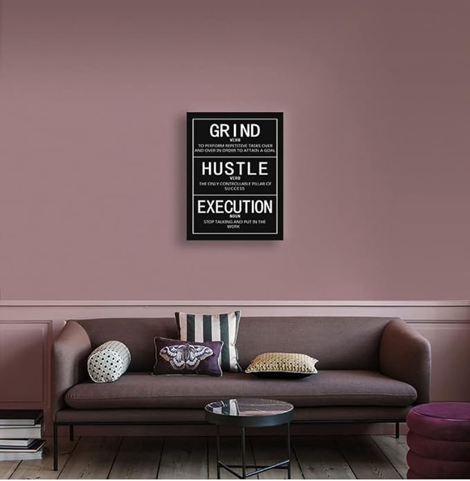 Grind Verb Hustle Verb Execution Noun Motivational Quotes Exercise Canvas Wall Art Inspirational Fitness Poster Print Painting Framed Artwork for Office Gym Home Wall Decor[18" W x 24"H]