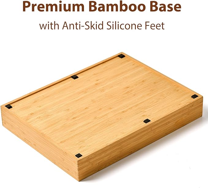 - 6 BIG ANTI-SKID SILICONE FEET: Premium silicone feet keep the bamboo trays immobile and quiet when pulling out and pushing back the drawer.