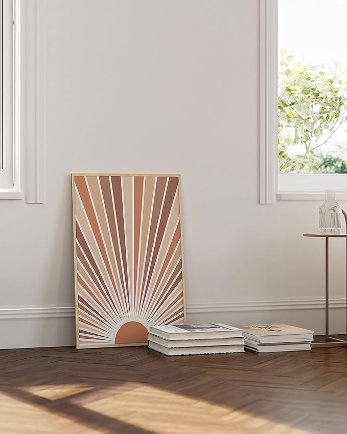 - EMBRACE BOHO VIBES: Mix global-inspired designs into any decor with this boho wall decor from Haus and Hues. Pictured in this neutral wall art is an image of the sun with bursting rays in earthy terracotta shades. This boho decor spotlights a bold, bohemian design in a natural color palette that matches well with rooms decorated with subtle and neutral tones, like gender-neutral nurseries and sunrooms