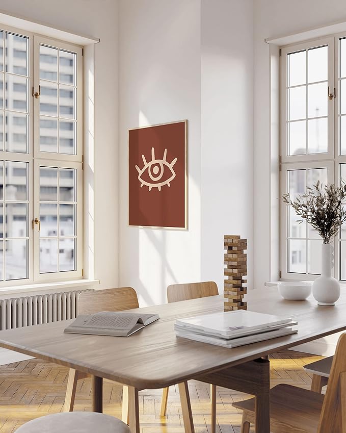 - INFUSE A TRIBAL FLAIR: Decorate your space with a unique aesthetic vibe with this abstract wall art print from Haus and Hues. This simple boho wall art in terracotta colors spotlights a powerful eye symbol that will surely draw attention and easily become the focal point of any space. Incorporating a mix of boho, tribal and mid century modern decor into any space has never been easier and more affordable