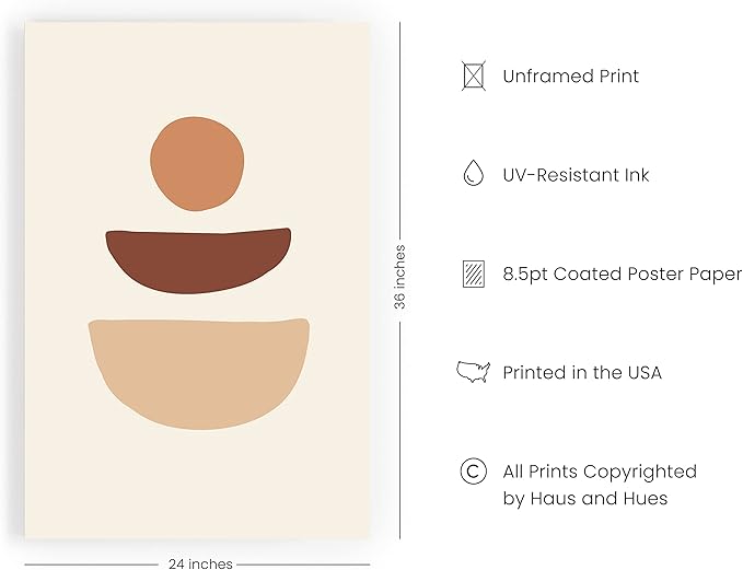 - QUALITY GUARANTEED: Buy Haus & Hues minimalist decor, mid century modern wall decor and minimalist art prints online with confidence. From curating designs, to finishing, to shipping, we ensure that no detail is overlooked so we can safely deliver perfect artworks right to your doorstep. If there are any problems with your order, we’re happy to offer replacement
