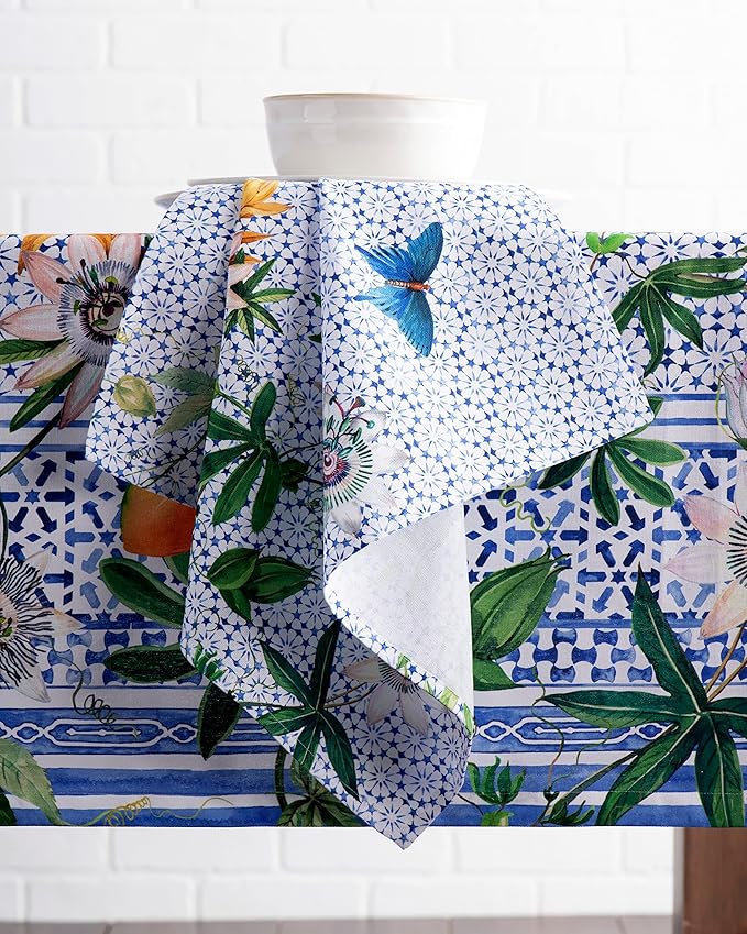 Maison d' Hermine Cloth Napkins Set of 4 100% Cotton Everyday Reusable Square Napkins Cloth Washable, Dinner, Party, Wedding, Restaurant, Spring/Summer (Passiflora, 20" x 20")