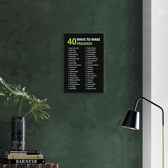 Inspirational Office Canvas Wall Art Motivational Positive Entrepreneur Quotes 40 Ways to Make Progress Painting Artwork Library Classroom Wall Decor Frame Ready to Hang[12''W X 18''H]