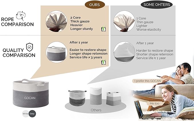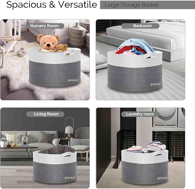- ✅XXXL Large cotton rope basket: Measuring 22 x 22 x 14inches, this rope laundry baskets is large enough and durable for blankets, laundry, plants, throw pillows, clothes, cushions, comforters, books, magazines and anything else you have in living room, bedroom, bathroom, lounge, helping you to organize your room and make your messy home tidy,good new year gift basket.