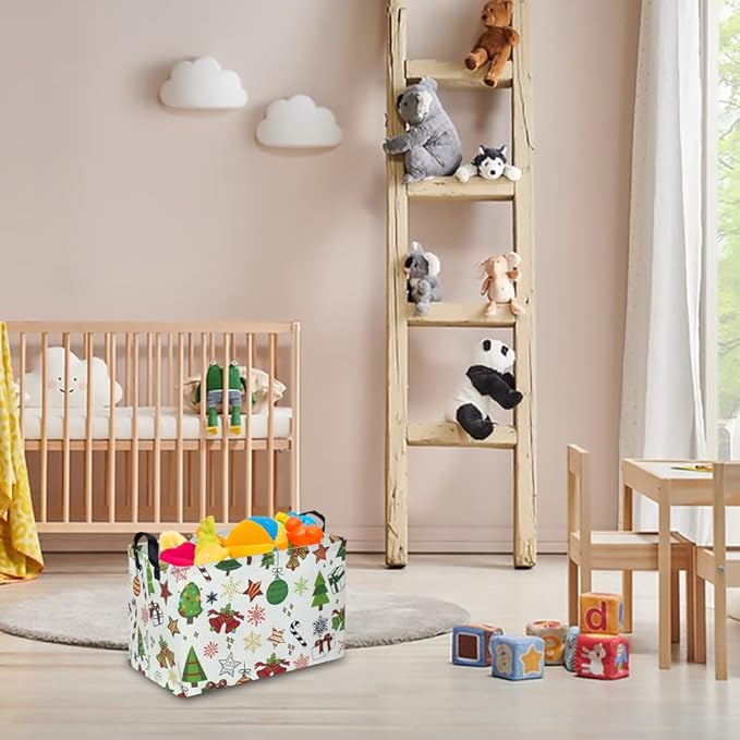 CLOCOR Rectangular Christmas Basket,Cute Pattern Christmas Gifts Basket Empty,Waterproof Christmas Storage Box with Handles,Kids Room Decor(Gift Basket)