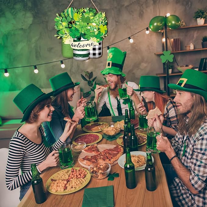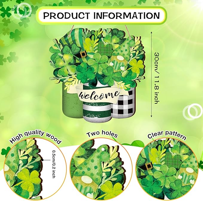 - St. Patrick's Day Design: door decorations hanging outdoor are printed with [welcome] word, and shamrock in bright green colors, which is full of St. Patrick's Day elements, adding a warm and rustic atmosphere