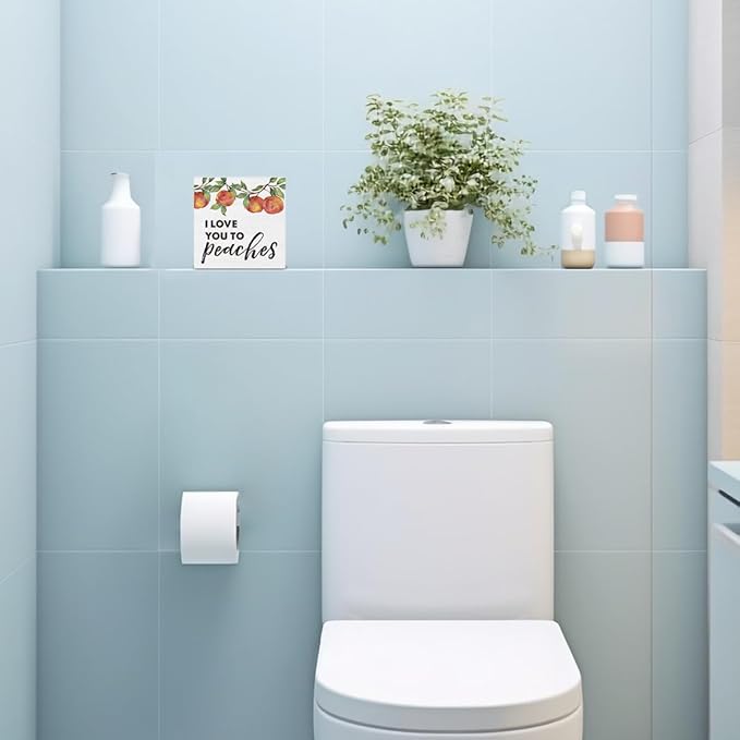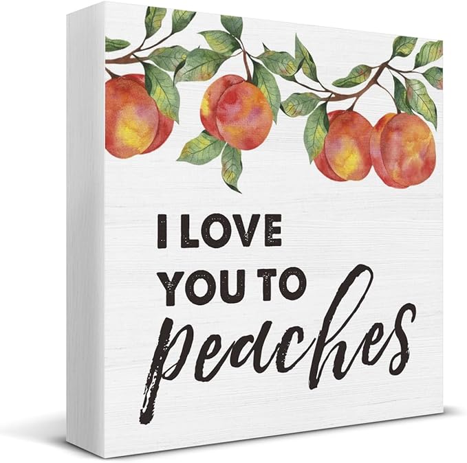 I Love You to Peaches Wooden Box Sign Peach Bathroom Decor, Peachy Love Quote Wood Sign for Farmhouse Home Bathroom Kitchen Desk Shelf Table Decorations 5 X 5 Inch