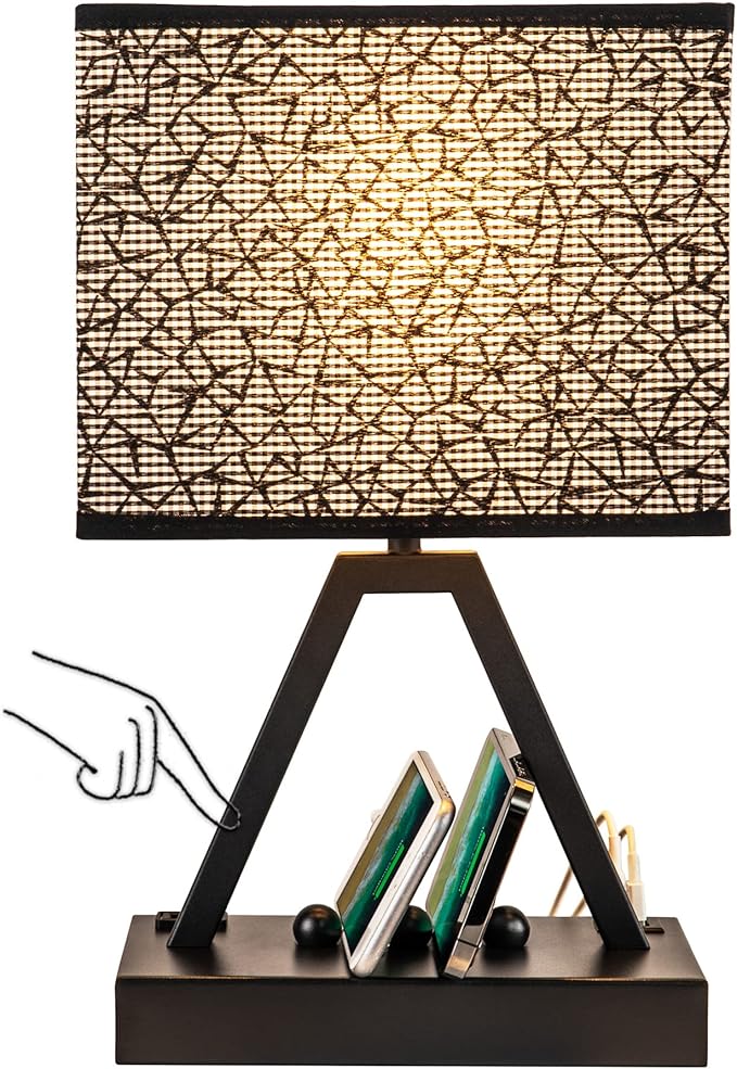 - 【UNIQUE PHONE STANDS DESIGN FOR KEEPING SPACE NEAT】The table lamp is designed with 3 decorative beads on the lamp base, they can hold your cellphone, tablets or electronic devices when charging, suitable for different thickness of your devices. Not only reduce your space but also keep your desktop neat. The base is made of high-quality metal, can prevent to rust and easy to clean. The ladder-shaped design of the lamp pole shows a sense of elegance and the stable structure can avoid wobbling.