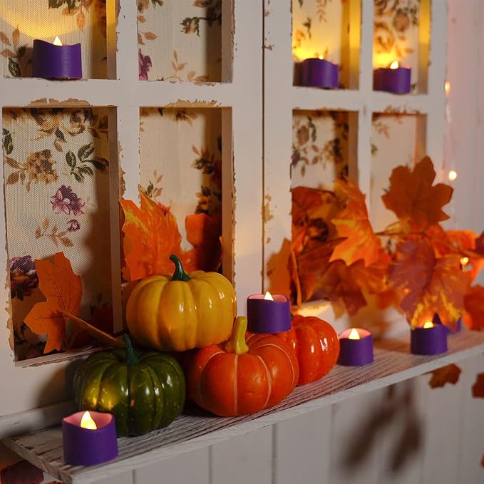 Homemory Purple Tea Lights Candles Battery Operated, 200+Hour Flameless Flickering Fake Electric LED Colored Tealights Candles for Party, Wedding, Halloween, Mardi Gras, Holiday Decor, 12-Pack