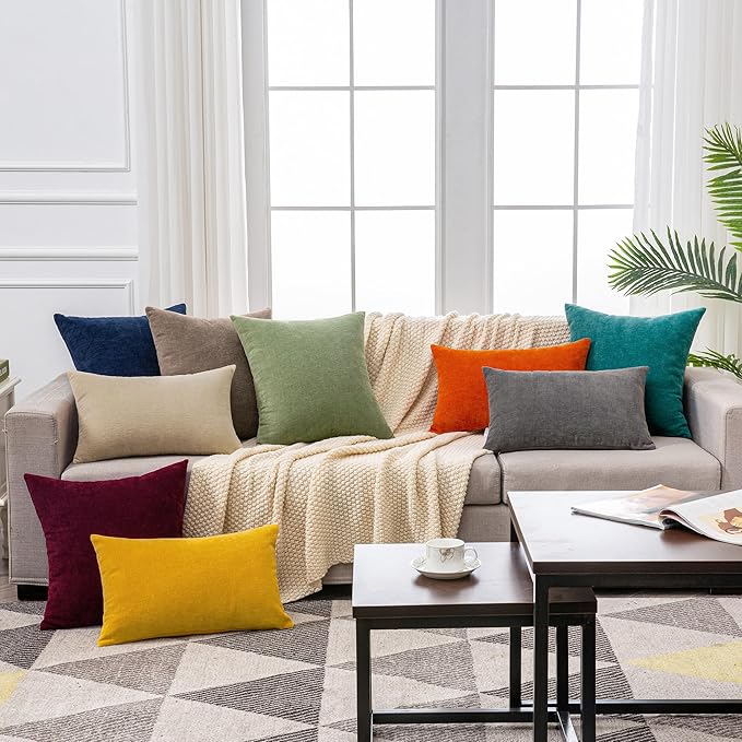 - DECORATION: Perfect Chenille Velvet pillow cover to decorate your room.Suitable for living room, bedroom, patio, lawn, porch, balcony, couch, sofa, office,floor,bench,chair ,window seat ,coffee shop,car,party, wedding, dining room outdoor,lumbar pillow,etc.It can be used as toddler pillow covers.Suitable for home decoration on various holidays, such as Thanksgiving, Christmas, etc. A nice gift for your families and friends.Preferable color choices for home decor in spring, fall.