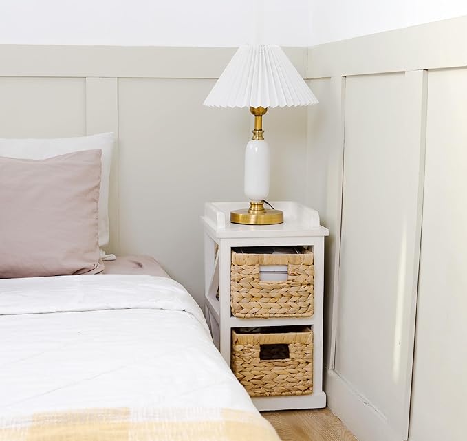 - ๐ฟ Natural and Sustainable: wicker baskets for shelves were handwoven from natural water hyacinth over an iron frame, the material is natural and friendly to the environment.