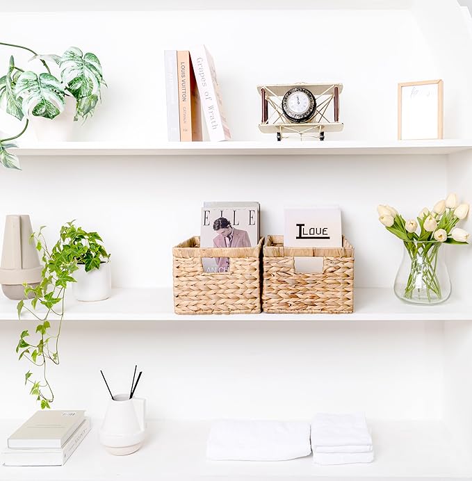 Set of 6 Wicker Storage Basket, Water Hyacinth Storage Baskets, Wicker Storage Baskets for Shelves, Wicker Baskets for Storage, Woven Baskets For Storage (6 Packs Medium)