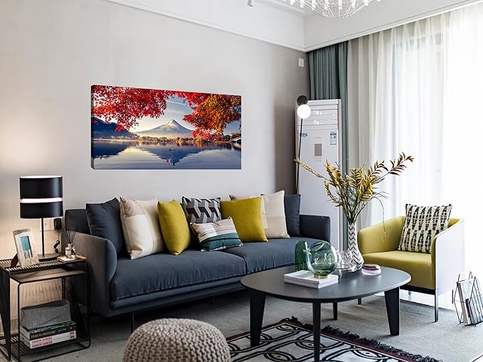 YYYYHPP YP1662 Canvas Prints Mountain Fuji with morning fog and red leaves at lake Kawaguchiko Nature Picture Wall Art Framed Artwork for Living Room Bedroom Kitchen Home and Office Wall Decor