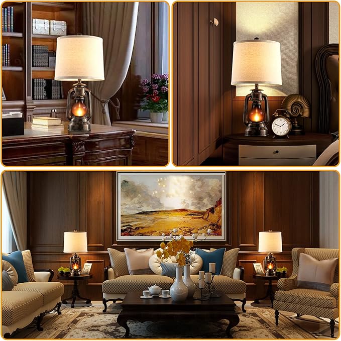 - Set of 2 rustic miner lantern table lamps with nightlights: Oil lamp accent design for vintage industrial country themed rooms. The two light sources can be lit by the four-way rotary switch on the table lamp: top light on,night light on, both on, both off. Suitable for a bedside tables, living room end tables or side tables, or entryway tables