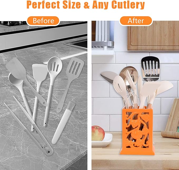- EASY TO DRY UTENSILS - The vintage pumpkin pattern of this countertop utensil holder not only adds charming touch to your kitchen, but also allows utensils to dry quickly and stay ventilated and dry.