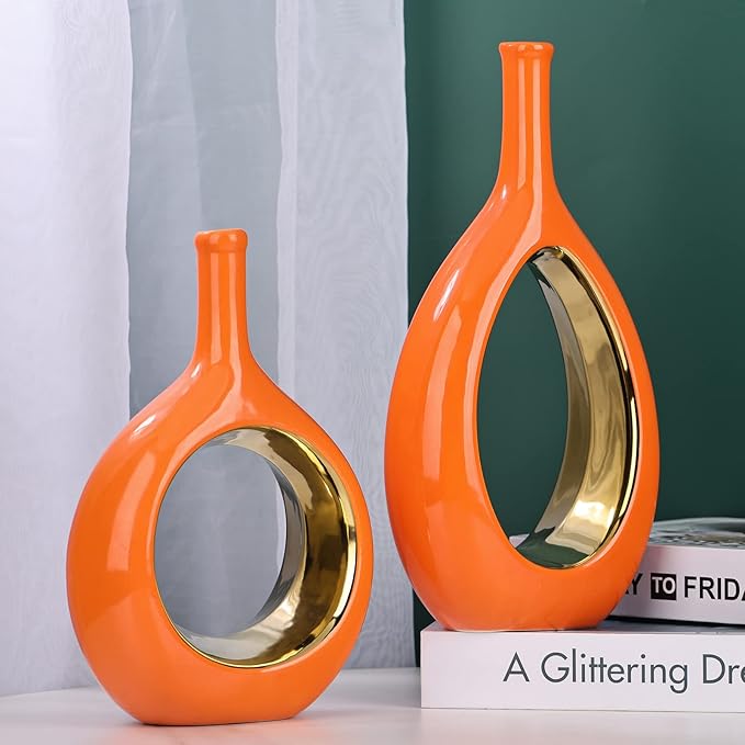 - 【Orange decor vase】contemporary home decor is a widely popular mid-century modern ellipse hollow vase, these small vases are perfect for your entryway, coffee table, shelf, mantle, accent table, and much more. They will look great no matter the season or holiday! Create a space in your home with refined fashion home décor accents, create a warm atmosphere in your home.