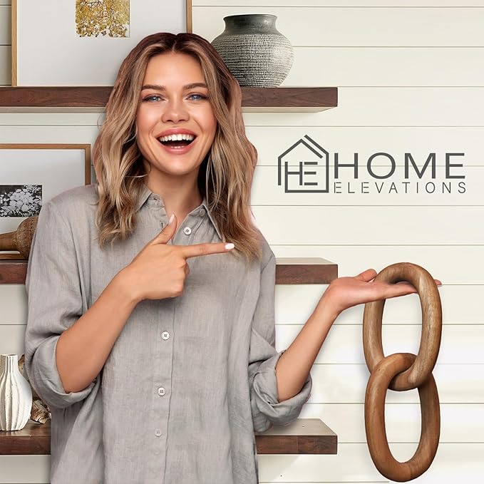 - Solid Home Decor Aesthetics: This 2-link chain decor (13" x 6") is handcrafted with a natural wood finish, showcasing unique grain and color; also available in black and white
