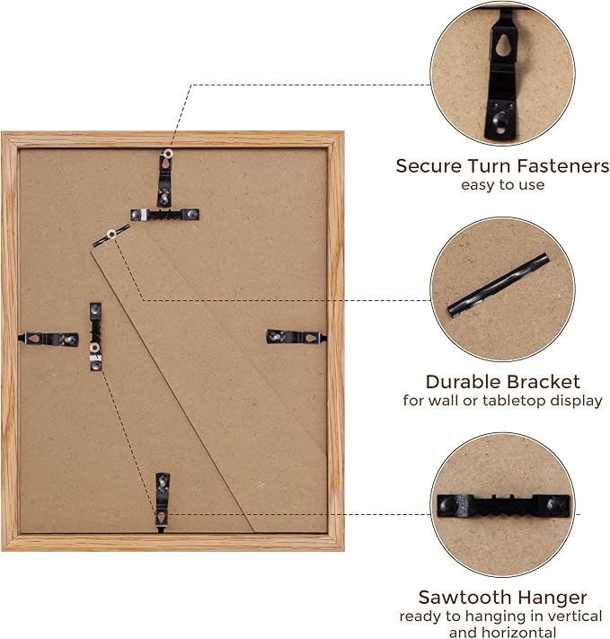 - WOOD FRAME FOR WALL OR TABLETOP - These wall photo frames are not only stylish and affordable, they're durable as well as easy to clip and hang. Can be hung horizontally or vertically to fit in the space available. Hanging hardware is included so you can display your frame as soon as it arrives!