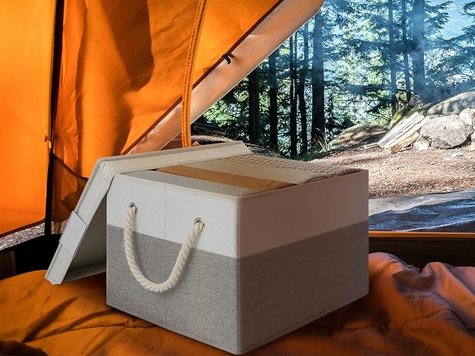 - STURDY ENOUGH: The closet organizer bins with lids are made of sturdy fabric with thickened cardboard on each side, giving a solid and neat facade for long-term use. Decorative storage boxes with lids have a large capacity and deep enough that can be used as storage clothes, pet products, laundry, towel, blanket, bedsheet and more.