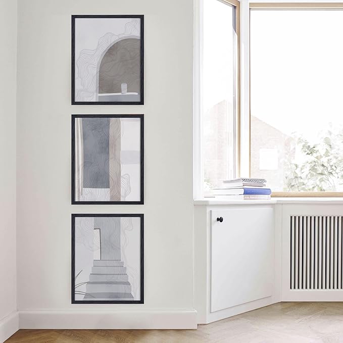 Black Picture Frames 11x14 Set of 3, Light Wood 11 x 14 Frames for Wall, Solid Oak Wood Frame 11 by 14 with Tempered Glass, 11x14 Frame with Mat for 8x10, Black 11x14 Poster Frames