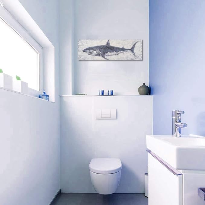 NdcSkyArt Vintage Shark Canvas Wall Art: Nautical Decor for Coastal Home & Office