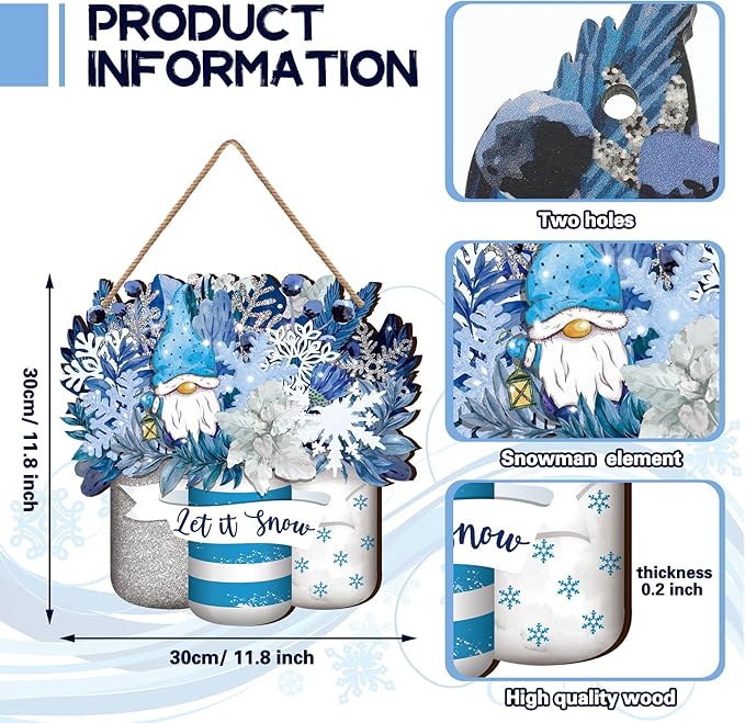 Spiareal Winter Welcome Sign Wood Blue Mason Jar Front Door Decor Winter Wooden Hanging Wreath Outdoor Front Door Decorations for Farmhouse Porch Decoration (Blue Mason Jar Style)